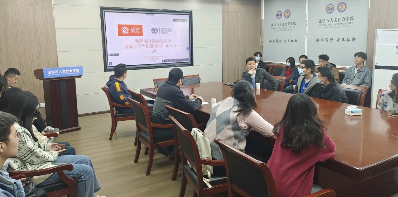 2023年3月27日14:30,best365网页版登录法学系在东院教四907开展“实务专家进讲堂——国际化视野人才培养暨就业计划”系列讲座。本次讲座特邀请周海滨先生主讲。周海滨先生是国际劳工组织全球商业和残障网络中国分支秘书长,融易咨询创始人、CEO,全国心智障碍者家长组织联盟监事长,国际劳工组织残障平等培训认证引导师,在国内外重要出版物公开发表了多篇关于中国残障者尤其是心智障碍者的权利、技能发展和残障者就业和反歧视的文章。本次讲座主要围绕“残障融合国际趋势下中国残障大学生职业转型中的若干问题探讨”这一主题展开,线上线下同时进行,学院马卉老师、吴振东老师、,以及法学19级学生全体参会。