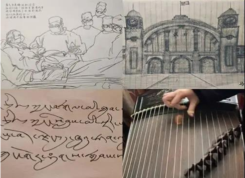在疫情防控阻击战中,支部2019级一众学子为大爱发声,为战“疫”加油,积极在网络上传播好声音,凝聚正能量。有的支部成员描绘出自己家中身为医生的亲人是如何奋力战斗在第一线的;有的则注意到网络舆论的不良传播现象,提醒大家要时刻保持清醒和理智;更有的表达出了自己对于各行各业坚守在抗疫一线的平凡英雄的关心和感谢……支部2019级本科生吴雨欣、马子滕以画抒情,绘画《病床前》、《汉口火车站》表达对汹涌疫情前负重前行的医护人员肩负使命、勇担职责的敬佩与感激,对武汉终将战胜疫情、苦尽甘来的坚定信心。索朗多吉、依丽米努尔等少数民族同学用自己的民族语言献上对祖国、对武汉第二故乡的深情祝福,体现抗击疫情中各兄弟民族众志成城、共克时艰的血脉羁绊。苏钰琪、孙安好演唱的歌曲《平凡天使》聚焦疫情中最美的逆行者,表达对抗击疫情一线工作人员遇难成祥、逢凶化吉的祈福,讴歌平凡人在疫情抗击中不平凡的英雄壮举。更有李华君古筝演奏的《与你同在》,以铮铮琴声安抚疫情爆发以来人们紧绷的神经,以婉转的音乐舒缓心情,表达对武汉重现繁荣喧闹、樱花烂漫的期盼。